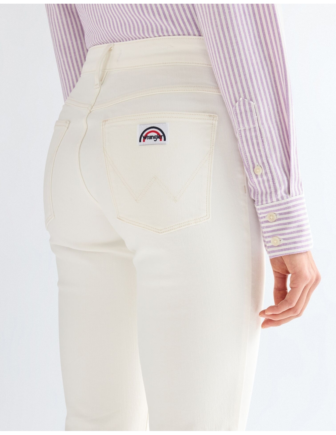 Stylowe damskie spodnie jeansowe Wrangler w uniwersalnym kolorze białym. Model 112378701 łączy w sobie codzienny komfort i charakterystyczny styl marki.